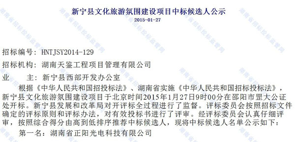 中標(biāo)通知——熱烈祝賀湖南正陽成功中標(biāo)新寧縣文化旅游氛圍建設(shè)項(xiàng)目[2015-02-07]