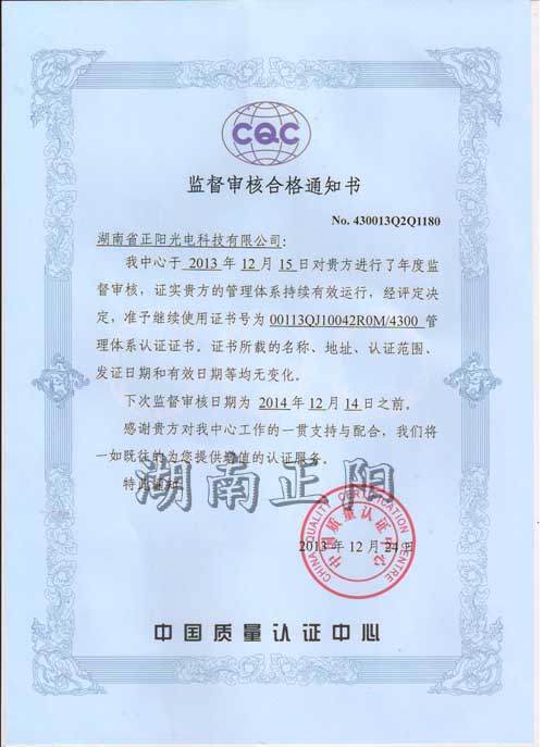 2013年12月25日,在ISO專家組的嚴(yán)格審核下,我公司順利通過了ISO質(zhì)量管理體系、ISO環(huán)境管理體系認(rèn)證的年審。