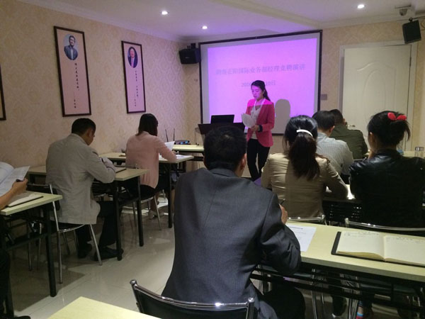 2016年5月10日,湖南正陽為了加強團隊領導能力,使優(yōu)秀年輕干部得到成長與鍛煉,同時進一步增加后備干部的儲蓄與培養(yǎng),湖南正陽決定組織召開國際業(yè)務部經(jīng)理競聘演講會議...