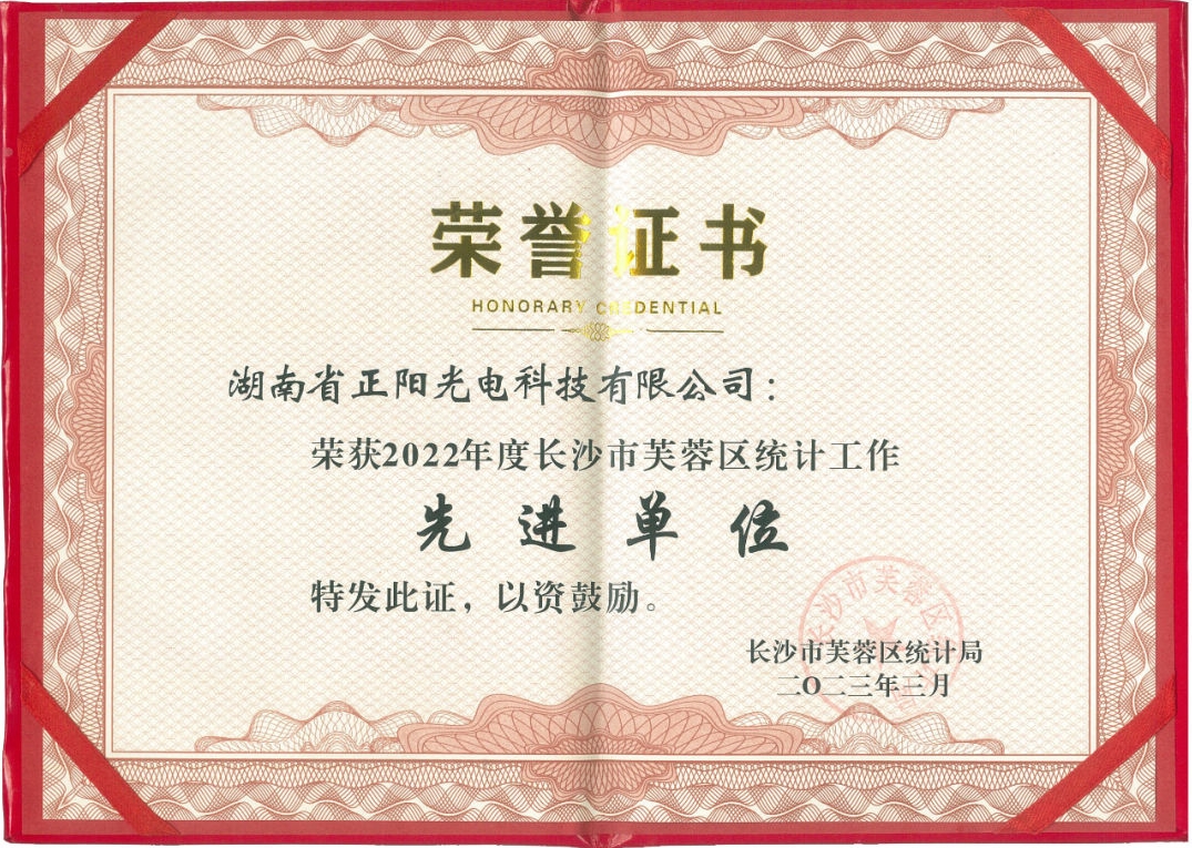 為進(jìn)一步做好統(tǒng)計(jì)工作,積極調(diào)動(dòng)轄區(qū)企事業(yè)單位統(tǒng)計(jì)工作積極性,提升統(tǒng)計(jì)數(shù)據(jù)質(zhì)量,長(zhǎng)沙市芙蓉區(qū)統(tǒng)計(jì)局表彰了一批2022年度統(tǒng)計(jì)工作先進(jìn)單位及個(gè)人。湖南省正陽(yáng)光電科技...